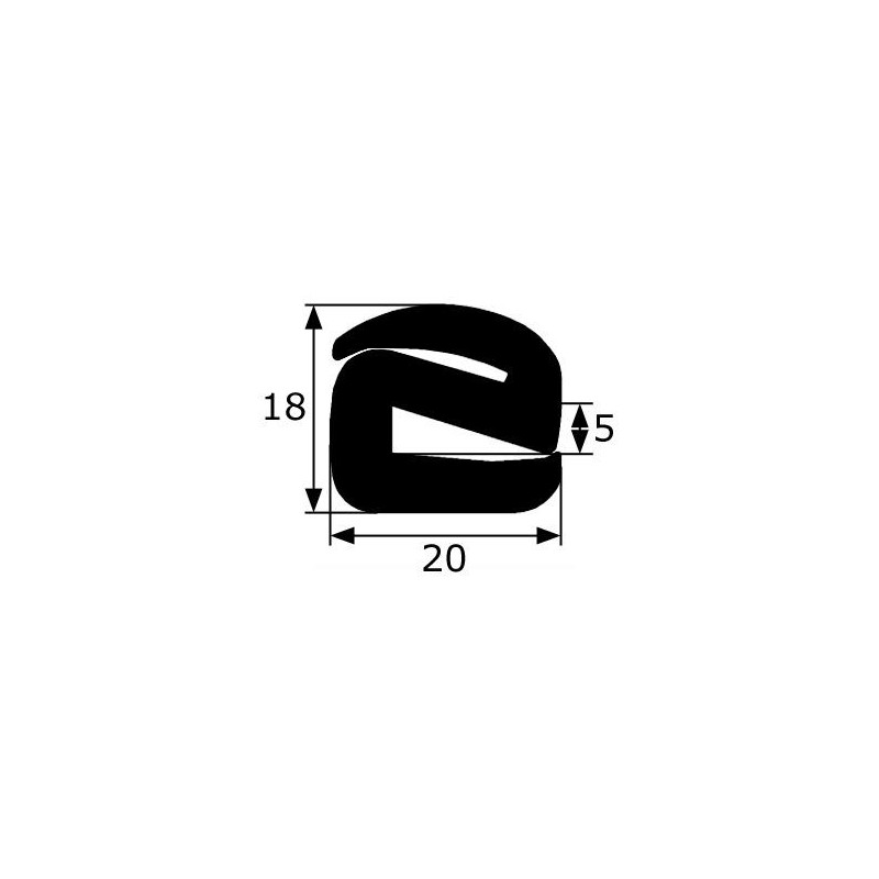 Perfil de goma en forma de S para contorno de cristal. Medida 20x18mm. Aplicación para uniones de vidrio y metal. Gran resistencia y flexibilidad. Uso interior/exterior. Aplicación en industria, carrocerías y automoción. Precios por metro lineal