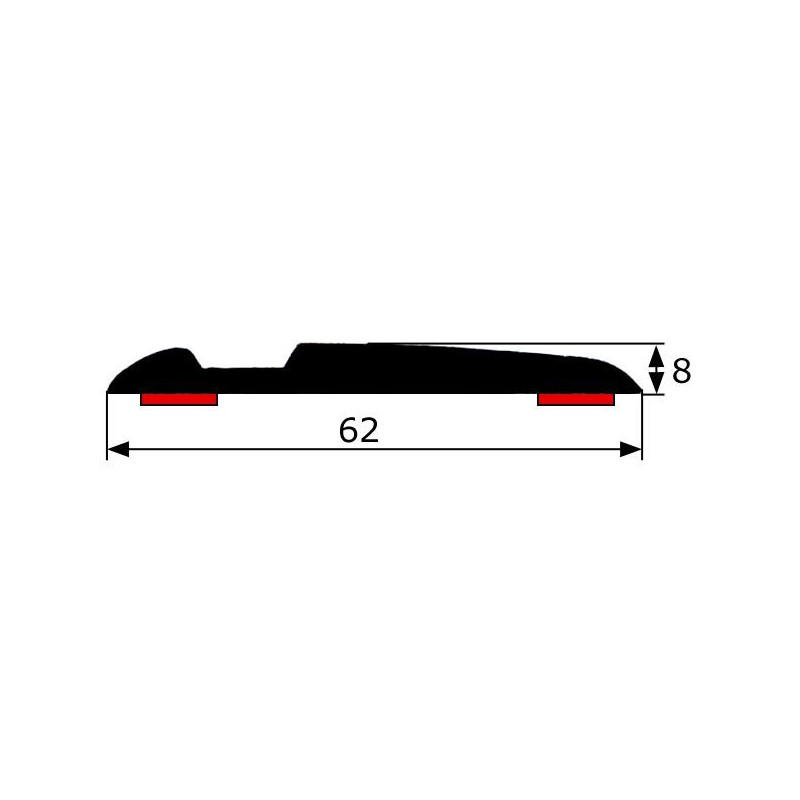 Moldura XXL autoadhesiva de PVC en color negro. Medida 62x8mm con franja de 9mm. Ideal para combinar con cinta de vinilo de color. Protección industrial en puertas y laterales. Adhesivo 3M de alta calidad. Precio por metro lineal. 1ud = 1metro