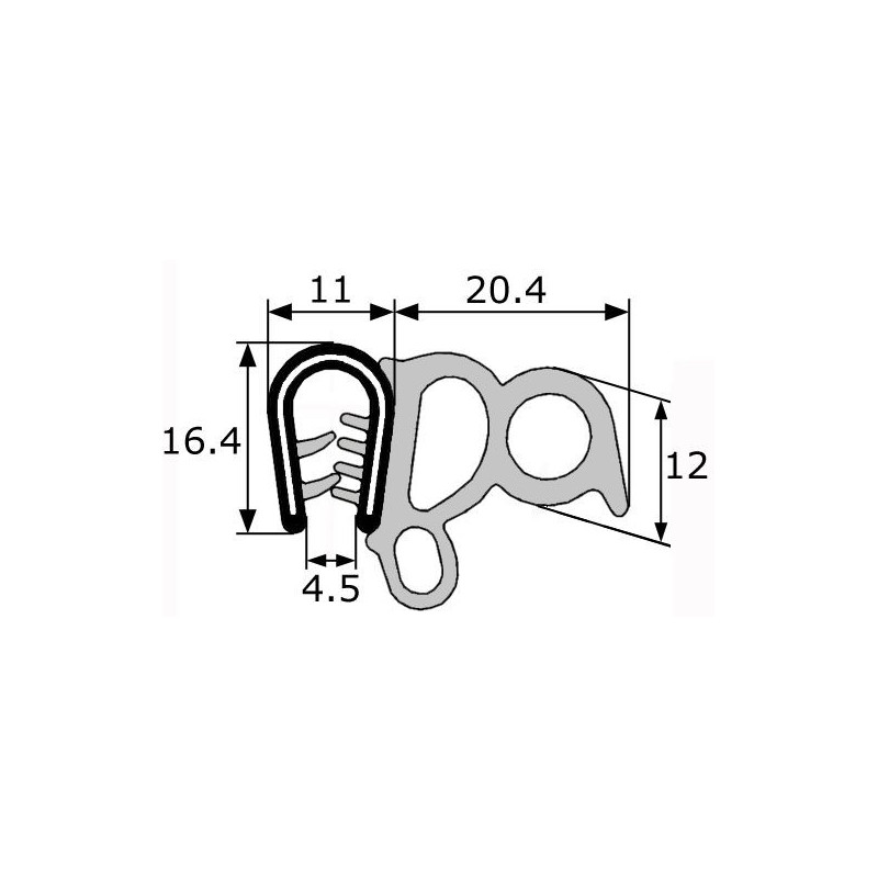 Goma doble para estanqueidad lateral. Medida 31,4x16,4mm. Extra ancha. Adapta a 4mm de grosor. Protección y aislamiento ante humedad, ruido y rozamiento. Uso interior/exterior. Aplicación en carrocería y sector industrial. Precios por metro lineal