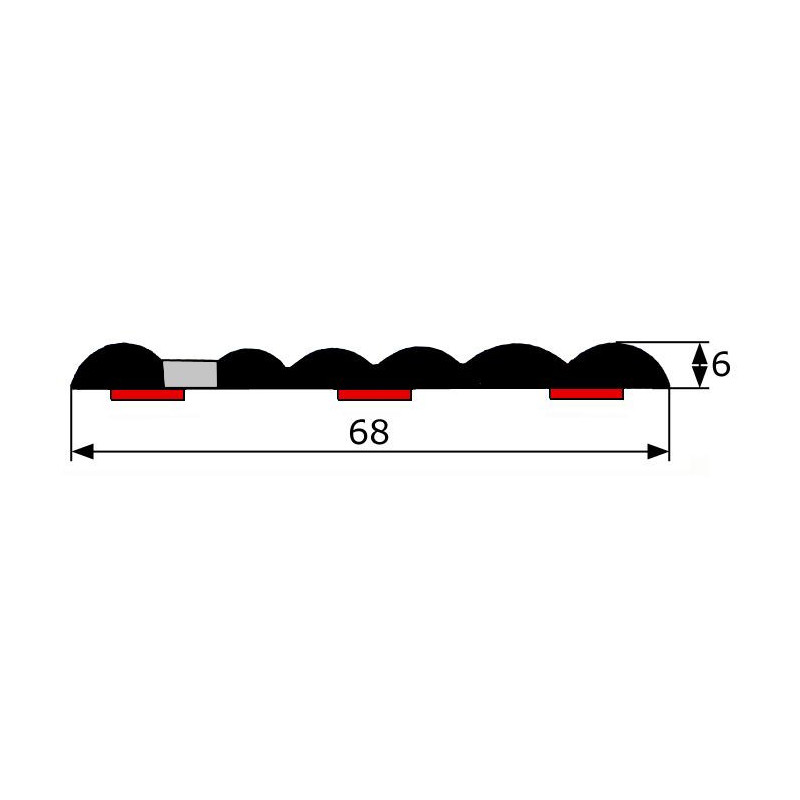 Moldura XXL autoadhesiva de PVC. Medida 68x6mm. Gran flexibilidad Original de modelos clásicos Opel y versiones similares. Moldura de color negro con franja de 8mm de color rojo. Adhesivo 3M alta calidad. Precio por metro lineal. 1ud = 1metro