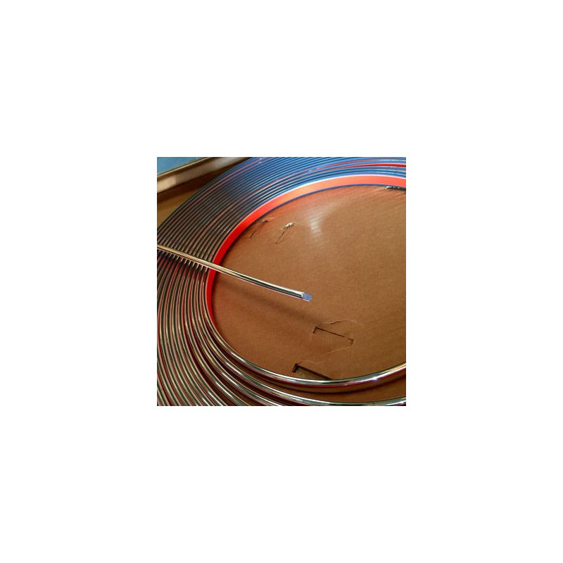 Moldura autoadhesiva de PVC en color cromado. Medida 18x5mm. Moldura flexible con acabado brillante. Ideal para protección y decoración en automoción, industria y bricolaje Adhesivo de alta calidad. Precio por metro lineal. 1ud = 1metro