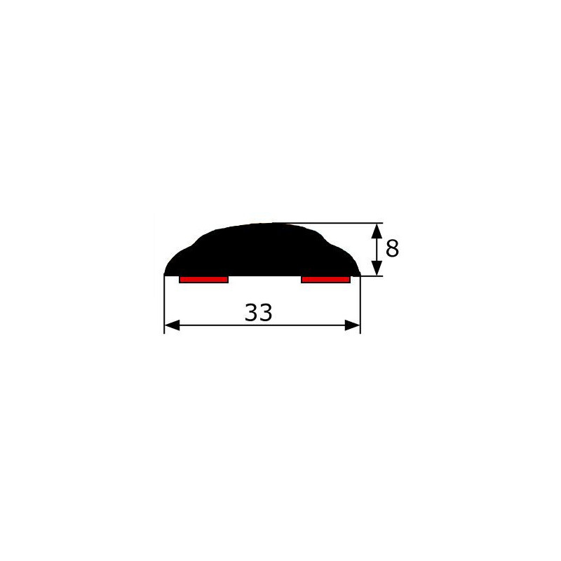 Moldura autoadhesiva de PVC en color negro. Medida 33x8mm. Muy resistente. Protección para puertas, frontal y laterales Adhesivo 3M de alta calidad. Aplicar calor para mayor flexibilidad. Precio por metro lineal. 1ud = 1metro