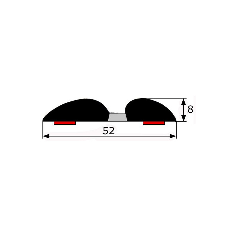 Moldura autoadhesiva de PVC. Medida 52x8mm. Gran resistencia. Original de modelos clásicos Opel y versiones similares. Moldura de color negro con franja de color gris o rojo. Adhesivo 3M de alta calidad. Corte y precio por metro lineal. 1ud = 1metro